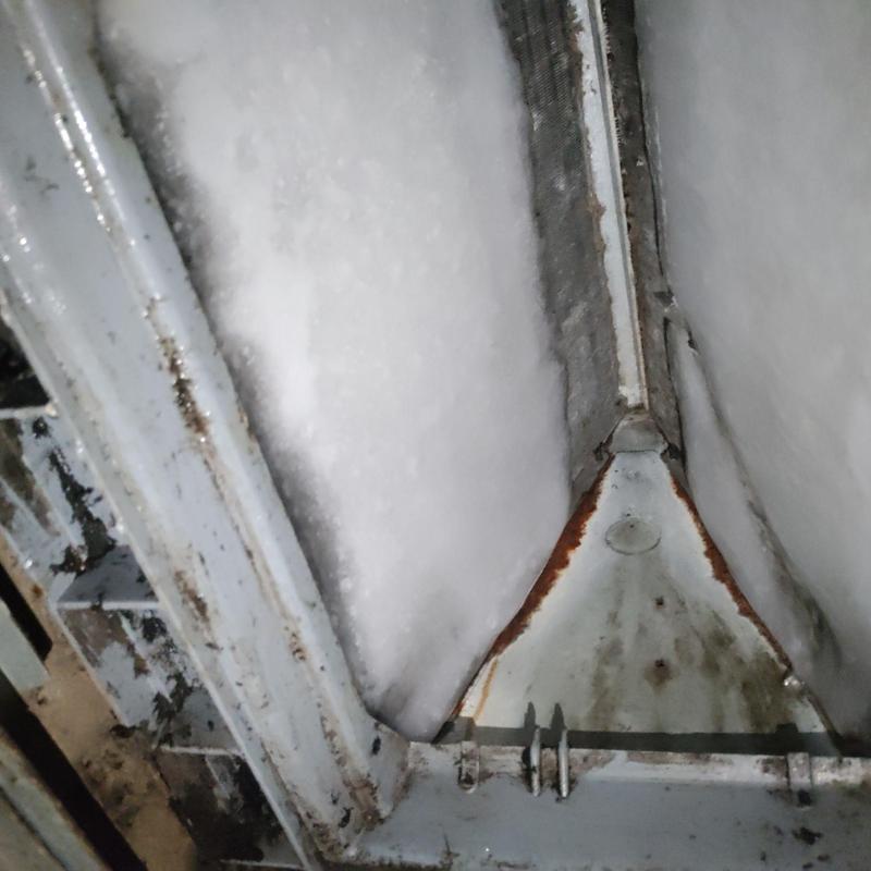Technicians inspected a failed 22-year-old R-22 heat pump in Lake City, Florida. They found the system iced over, with compressor fitting leaks, blocked air filters, and a broken evaporator fan motor. Based on the condition and age, they recommended a full system replacement to restore reliable heating and cooling.