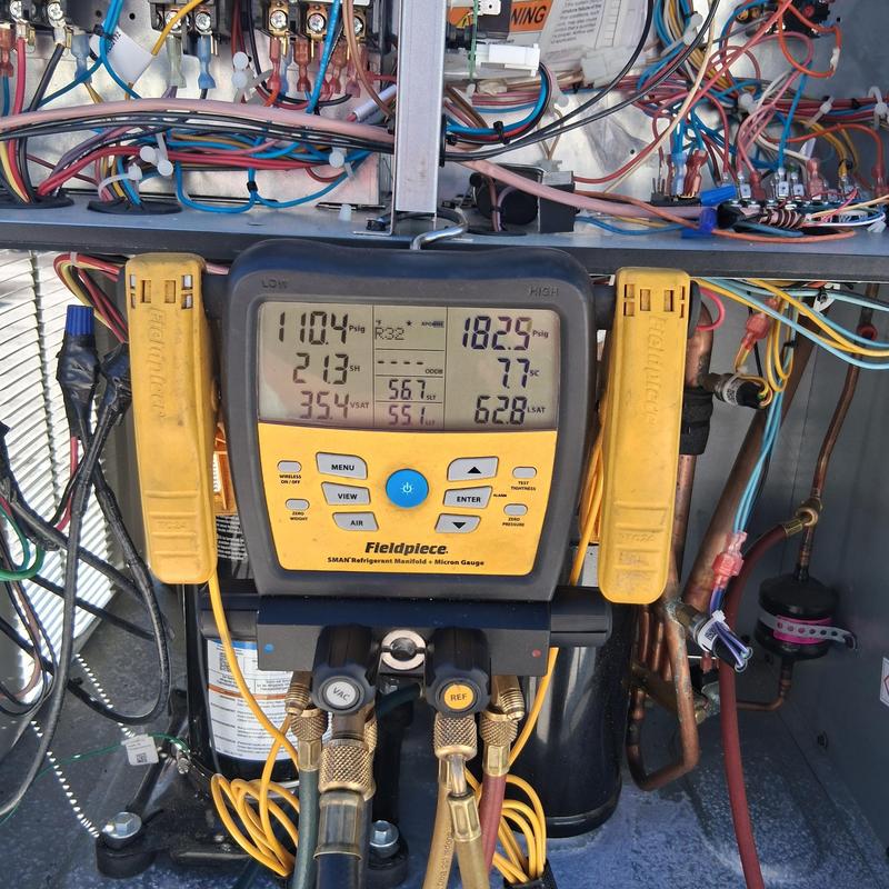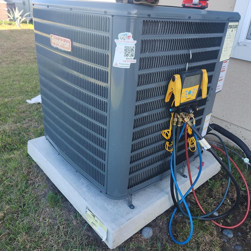 Chills on Wheels Heating and Air Contractors Inc completed an HVAC repair in Orange Park, Florida. Technicians replaced a failed part, pressure tested the system, pulled a vacuum, and recharged the refrigerant. Final tests confirmed proper pressure, temperature levels, and full operational performance. The system currently runs as expected.