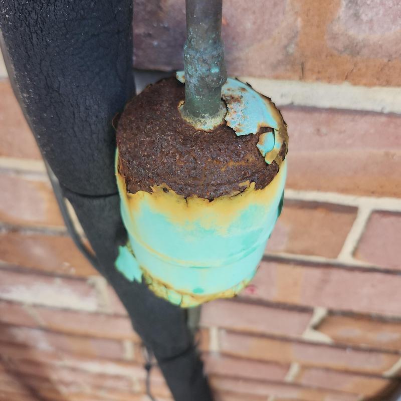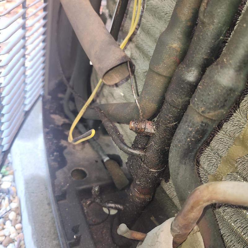 Chills on Wheels Heating and Air Contractors Inc repaired a major refrigerant leak in a line set in Jacksonville, FL. They replaced the damaged line set and recharged the system with 410A refrigerant to restore proper function.