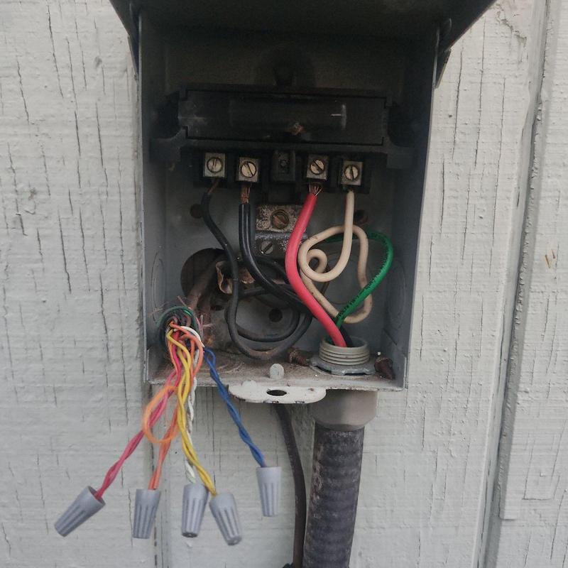 Technicians in Jacksonville, Florida, replaced both high and low voltage wiring for an HVAC system. They installed a disconnect for the heat kit and secured all wiring to ensure proper and safe operation.