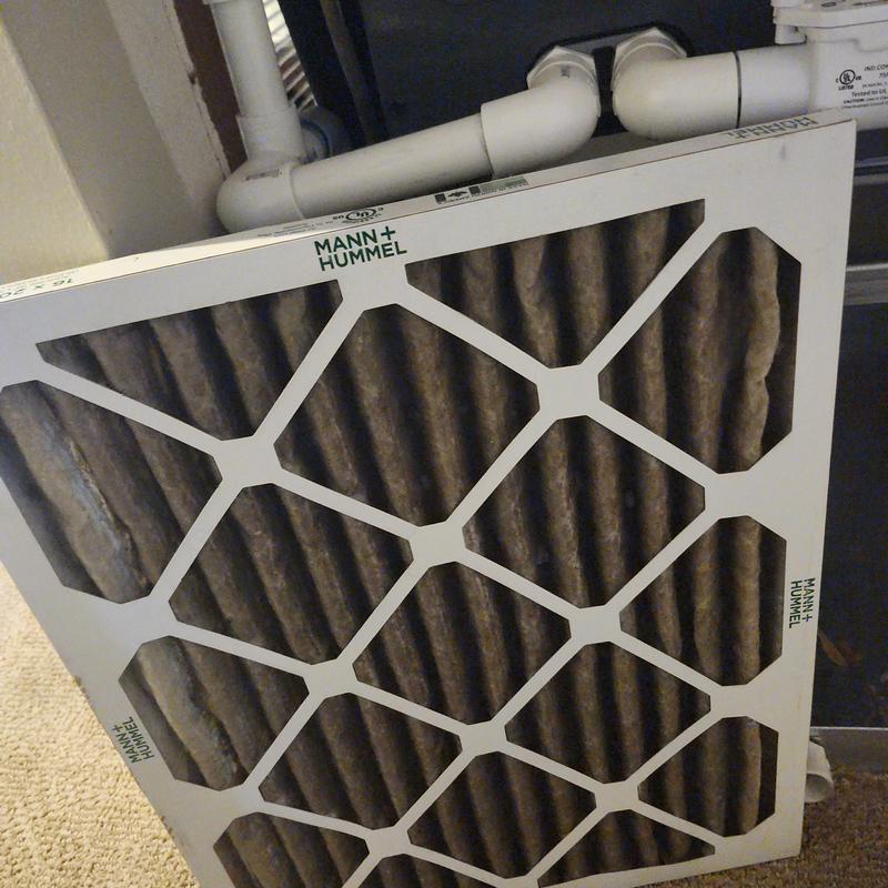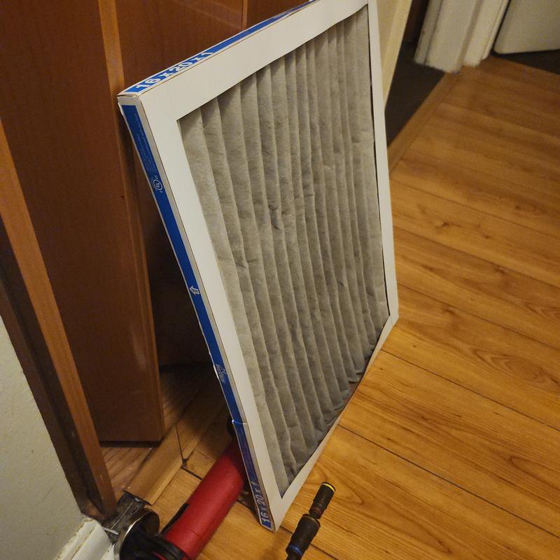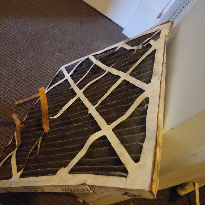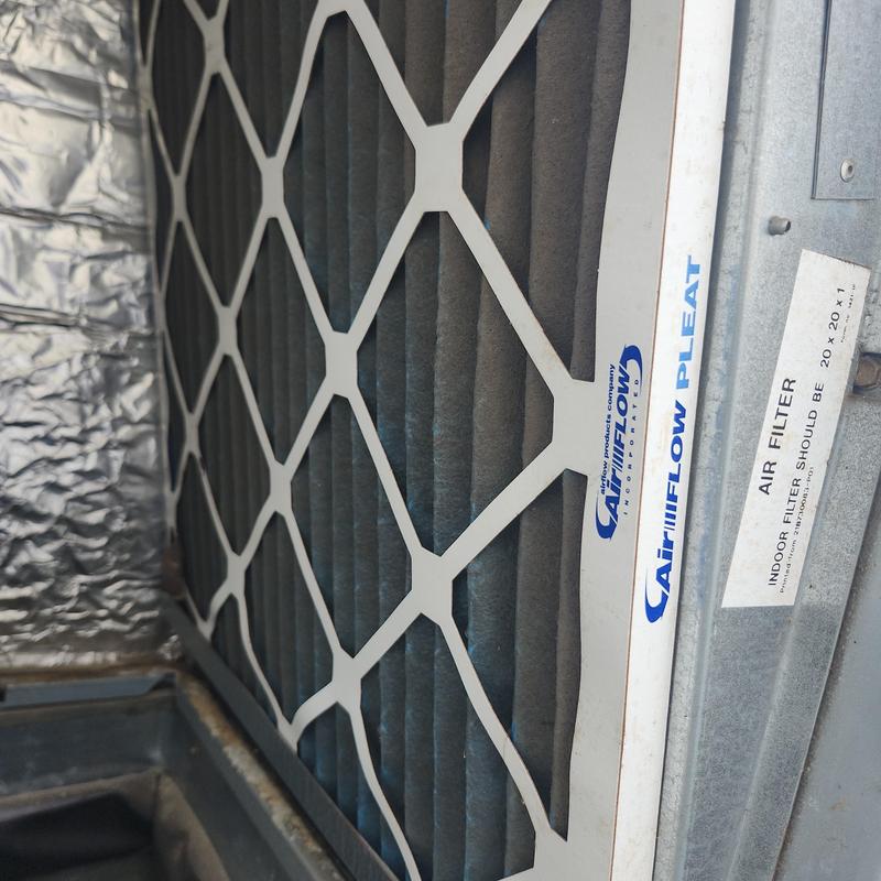Chills on Wheels Heating and Air Contractors Inc replaced a dirty 16x20x1 air filter in Jacksonville, FL. They inspected the air handler, blower wheel, coils, fan amps, condenser, voltage, and electrical components to ensure the HVAC system functions properly.