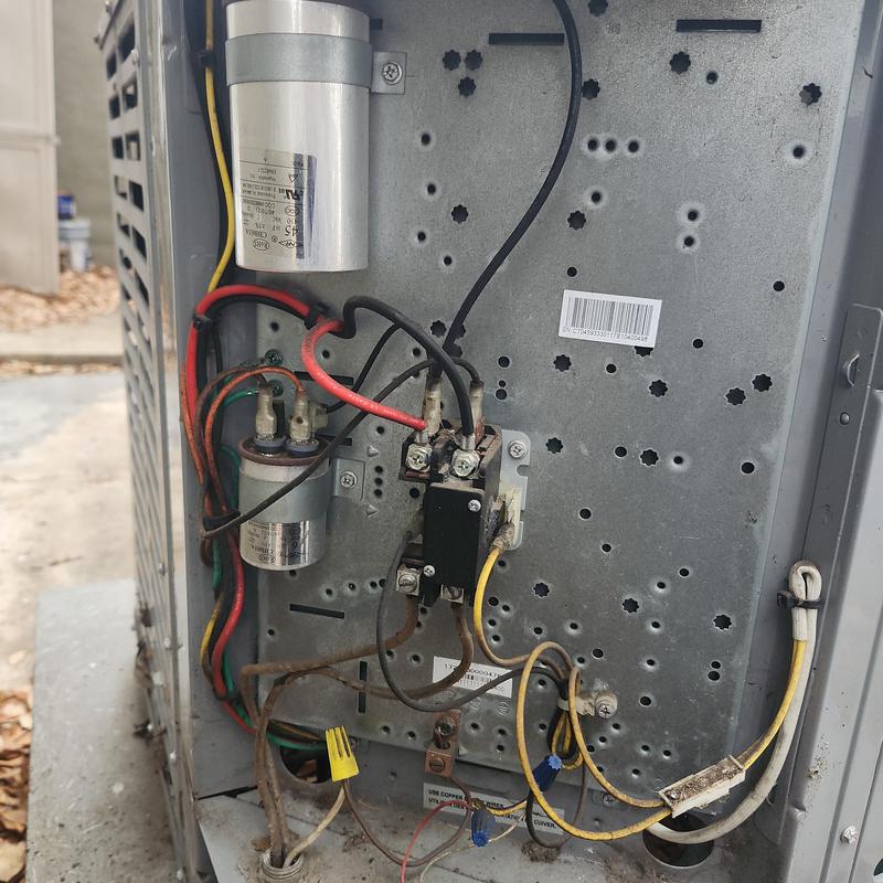 Chills on Wheels Heating and Air Contractors Inc inspected an HVAC condenser in Jacksonville, FL, found its electric box cover missing, and installed a new capacitor and double pole contactor. They advise replacing the full system, including copper lines and low-voltage wiring, due to unit age and exposure.