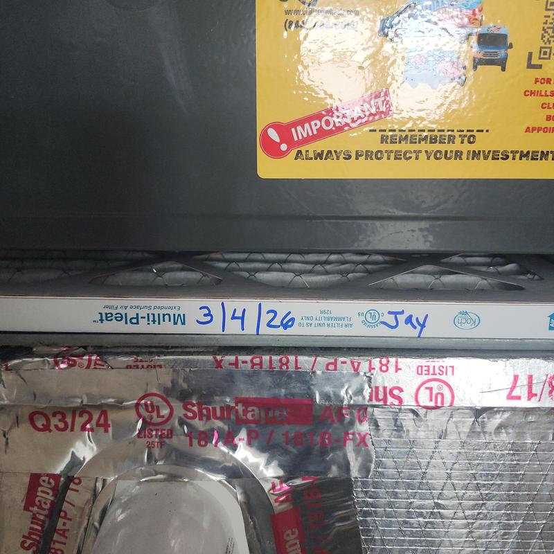 Chills on Wheels Heating and Air Contractors Inc replaced a faulty thermostat and installed a new air filter during a heating system inspection in Jacksonville, Florida. The team confirmed the unit functions correctly in heat mode. Due to lack of attic access, a full duct inspection was not completed. Future access may be required to check insulation and duct integrity.