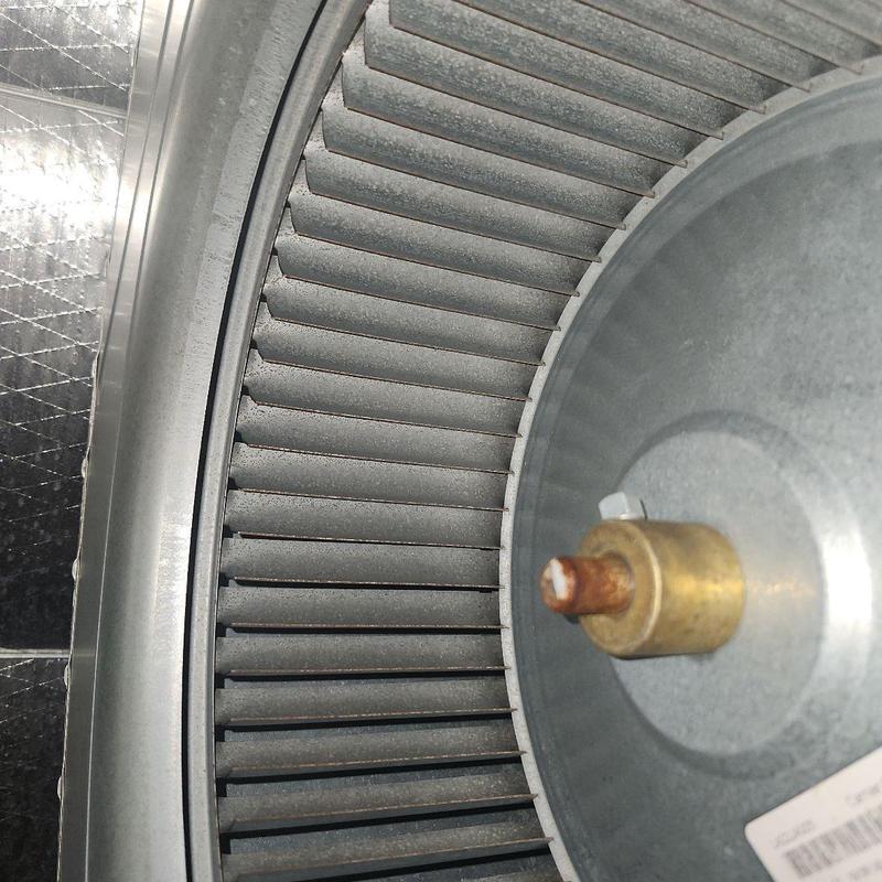 Chills on Wheels Heating and Air Contractors Inc cleaned the blower wheel, condenser coil, and evaporator coil of an HVAC system in Jacksonville, Florida. Technicians removed buildup using coil cleaner and rinsing methods to improve airflow and support system performance.