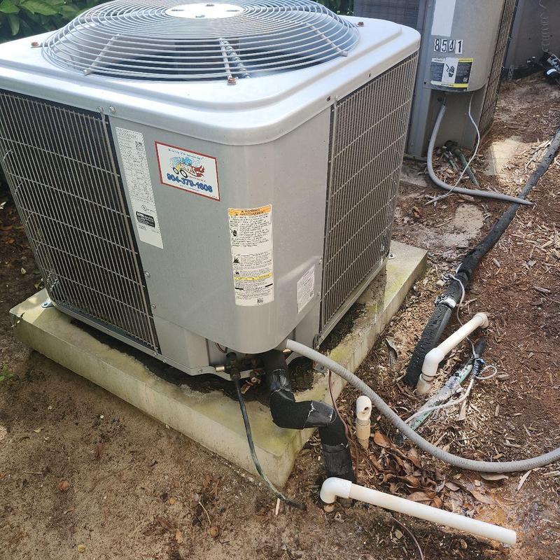 Chills on Wheels Heating and Air Contractors Inc repaired a condensate drain system in Jacksonville, FL. They inspected the drain, glued the PVC pipe, and tightened the condensate pump clamp. After repairs, they cleaned the area and monitored the unit to confirm proper operation.