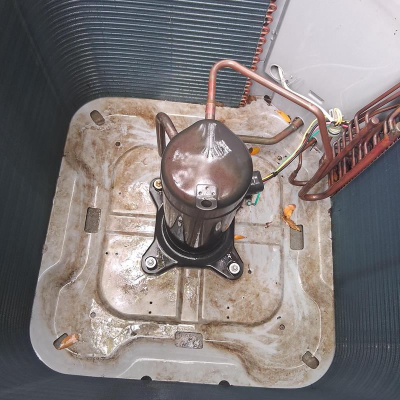 Chills on Wheels Heating and Air Contractors Inc serviced an air conditioning unit in Jacksonville, FL, adding 6 lbs of refrigerant to a system with multiple leaks in the compressor and coils. The technician identified significant corrosion and recommended a full system replacement for reliable operation.