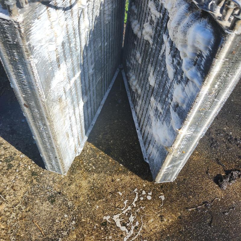 Chills on Wheels Heating and Air Contractors Inc cleaned a condenser coil in Jacksonville, Florida, restoring efficient operation and reducing energy costs for homeowners.
