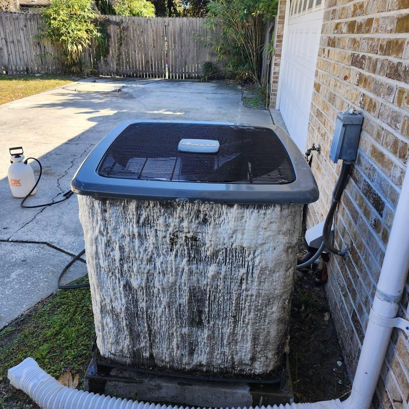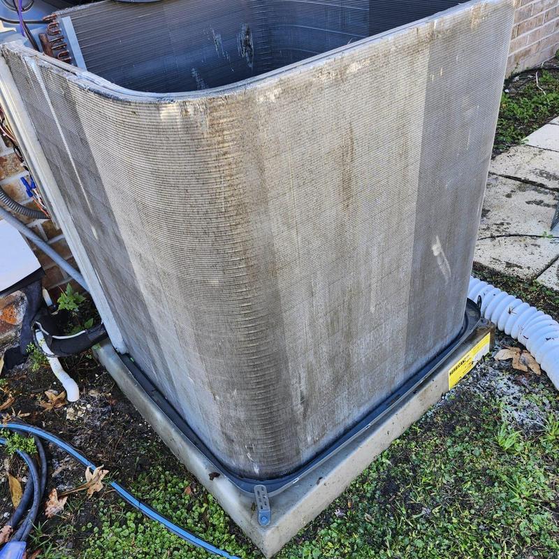 Technicians cleaned both the condenser coil and evaporator coil on an HVAC unit in Jacksonville, Florida. This service helps the system run efficiently and reduces the chance of future issues caused by dirt buildup in the coils.