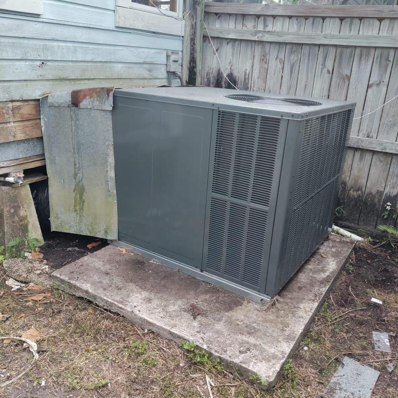 Chills on Wheels Heating and Air Contractors Inc replaced a damaged heat pump system in Middleburg, Florida. The team removed the old air handler and condenser, cleaned the refrigerant lines and drain, installed a new concrete pad, thermostat, heat pump condenser with tie-downs, and pulled permits for inspection.