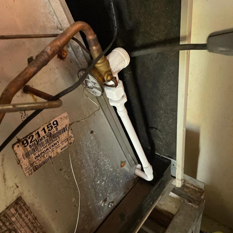 HVAC technicians in Jacksonville, Florida removed over 15 gallons of water from a clogged auxiliary drain pan and flushed the drain line. They replaced a 16201 filter, inspected the evaporator coil, and corrected water accumulation in the air handler. A weak capacitor was replaced with a 45+5 unit. System pressure and drainage were verified as normal.