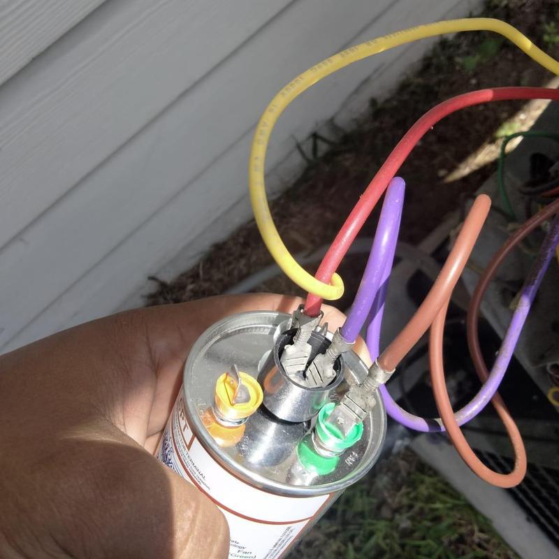 A technician in Orange Park, Florida, replaced a faulty air conditioning capacitor that showed abnormal readings and a bulged shape. The new capacitor restored the system to normal function, resolving the performance issue.