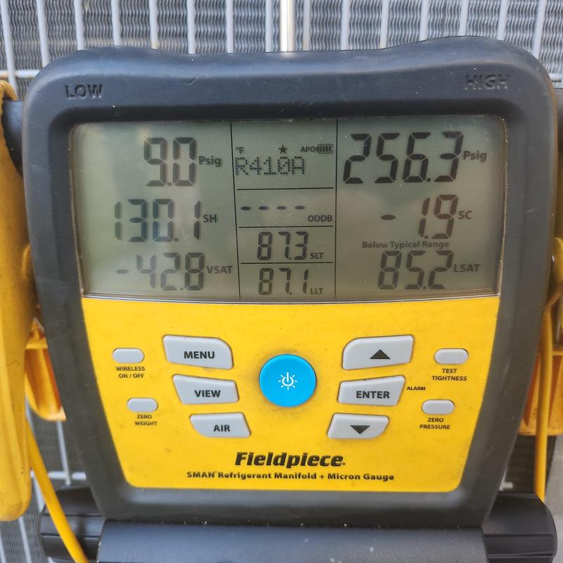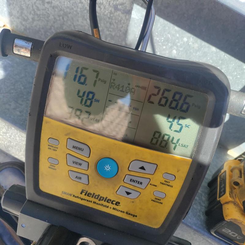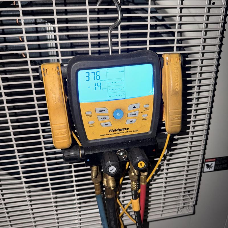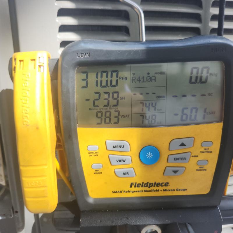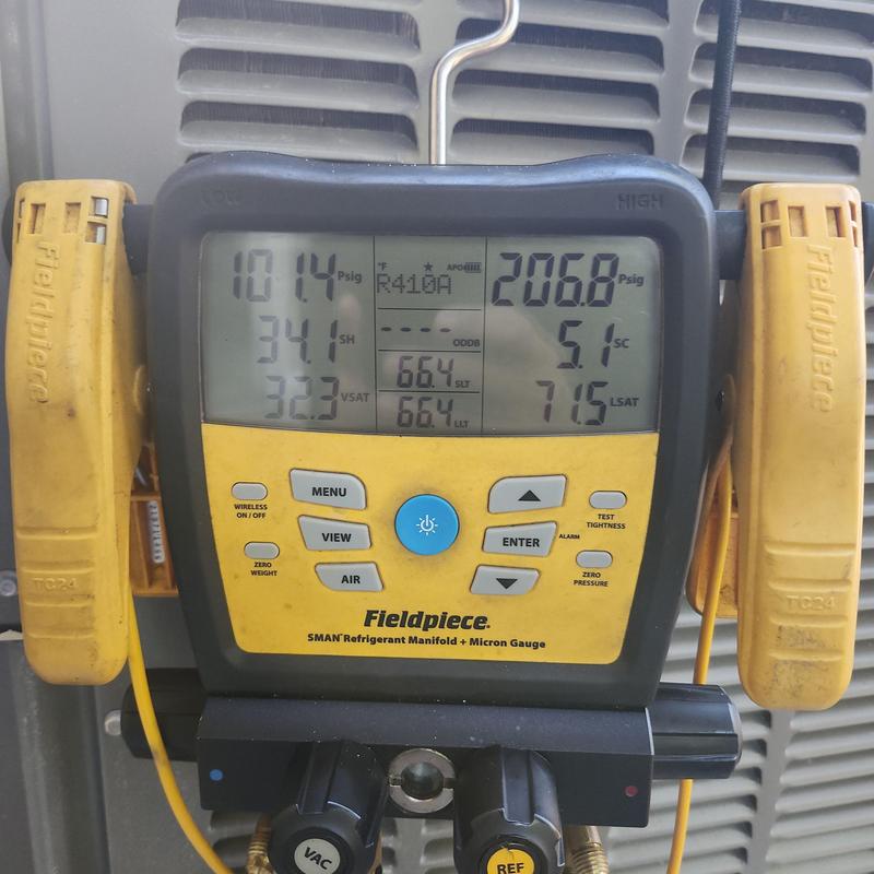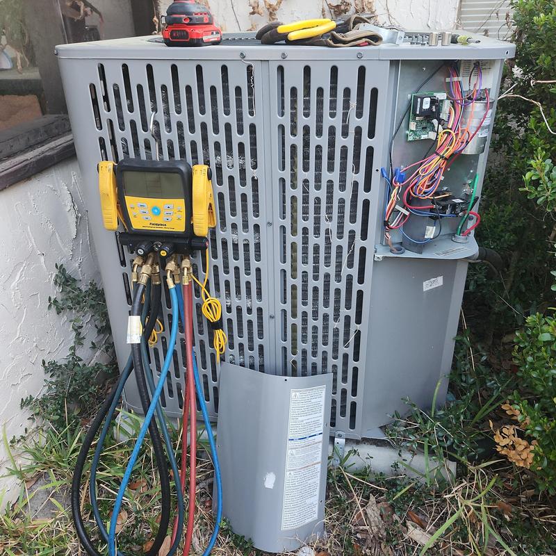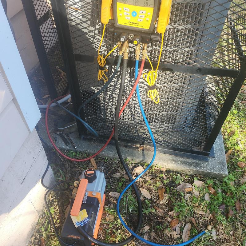 Chills on Wheels Heating and Air Contractors Inc repaired a system leak, completed a full pressure test, and pulled a vacuum to ensure proper function. The HVAC system now operates as expected based on its age and condition in Jacksonville, Florida.