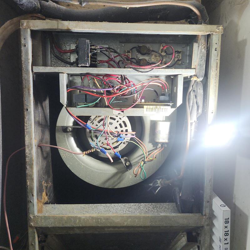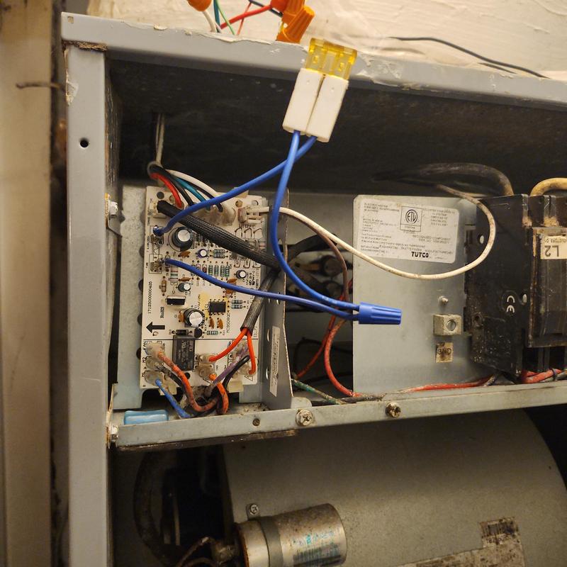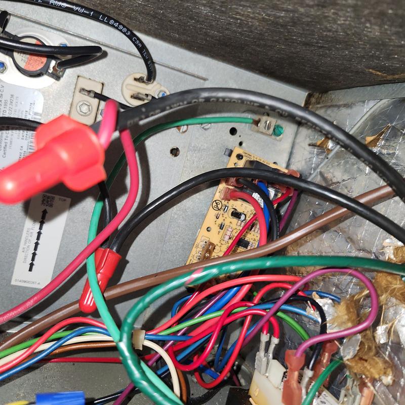 Technicians repaired a short circuit in the high-voltage wiring of an air handler in Jacksonville, Florida. They removed damaged wires and connectors, rewired the unit, and confirmed proper operation in heat mode. The service restored safe and reliable heating system performance.