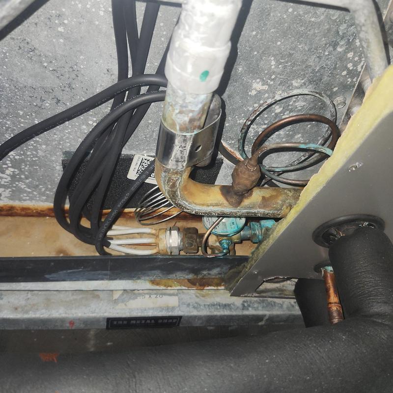 Chills on Wheels Heating and Air Contractors Inc completed a gas valve installation and cleaned the induction fan motor and flute pipe in Jacksonville, Florida. Technicians confirmed proper heating performance and resolved a reported gas odor. During inspection, they found a significant condenser coil leak requiring follow-up service for complete AC system function.