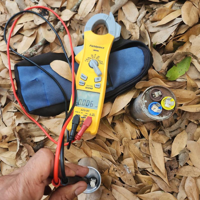 Chills on Wheels Heating and Air Contractors Inc repaired a non-functioning outdoor HVAC unit in Jacksonville, FL by replacing a blown 45+5 capacitor. The team also inspected pressures, coils, and filters to ensure proper cooling and heating system operation.