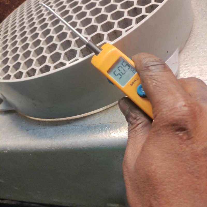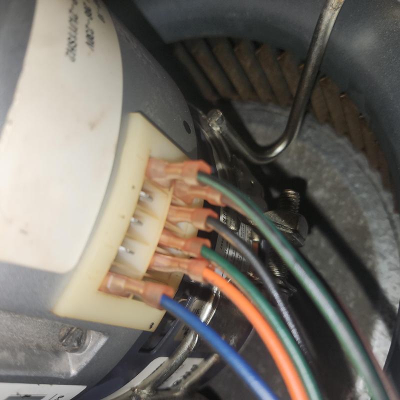 A technician installed a 34hp X13 evaporator fan motor into a 5-ton air handler at a main house in Jacksonville, Florida. The team tested the system, confirmed correct fan function in both fan and cooling modes, measured a proper temperature split, and verified full system operation. No further issues were identified.