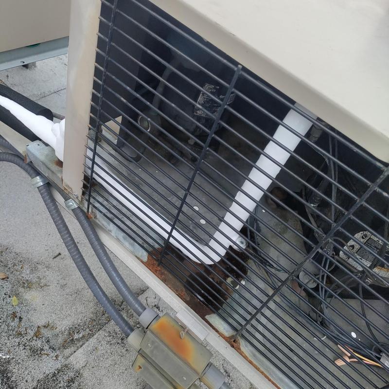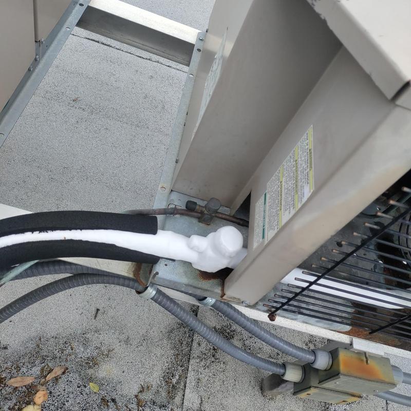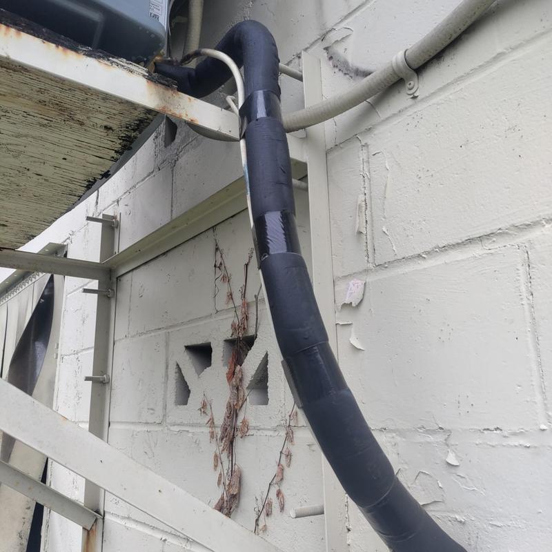 Chills on Wheels Heating and Air Contractors Inc installed a new drain line and insulated copper lines in Jacksonville, FL. This ensures proper drainage, reduces moisture buildup, and improves HVAC system efficiency. The system is now functioning correctly and in good condition.