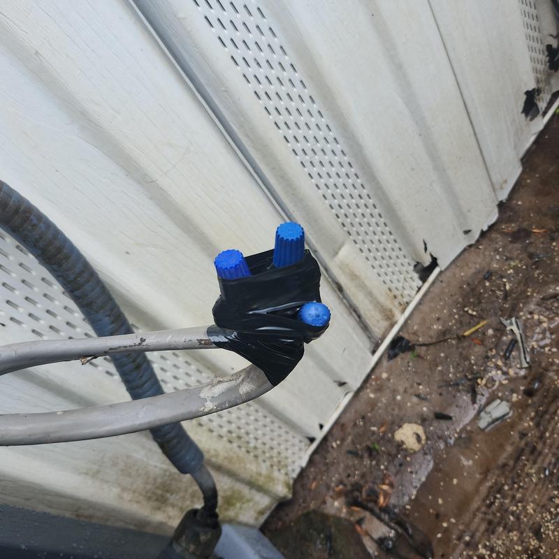 Chills on Wheels Heating and Air Contractors Inc fixed a short circuit on a high voltage whip in a heating and air system in Jacksonville, Florida. They cut off damaged wire tips and spliced the wires to restore proper system function.