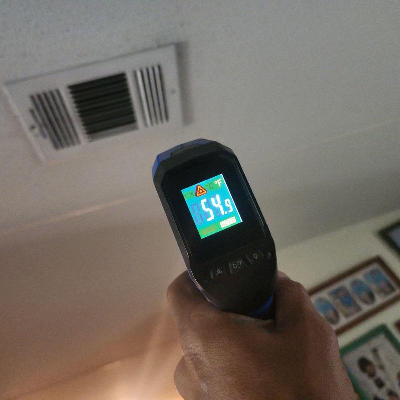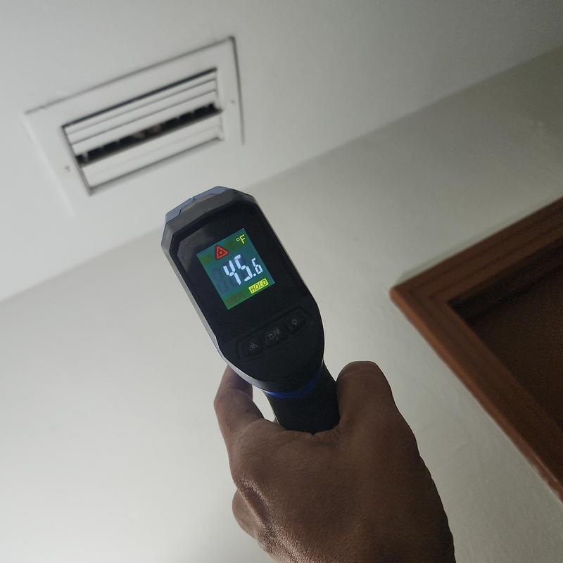 A contractor in Jacksonville, Florida inspected an HVAC system, removed a clogged filter, and recorded temperature readings. The technician found a dirty coil with debris and advised a full duct inspection and coil cleaning to restore proper airflow and system efficiency.