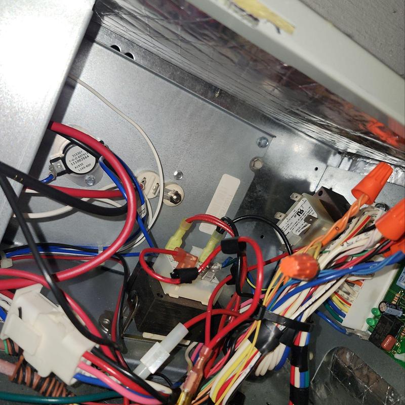 Technicians in Jacksonville, Florida, replaced both high and low voltage wiring for an HVAC system. They installed a disconnect for the heat kit and secured all wiring to ensure proper and safe operation.