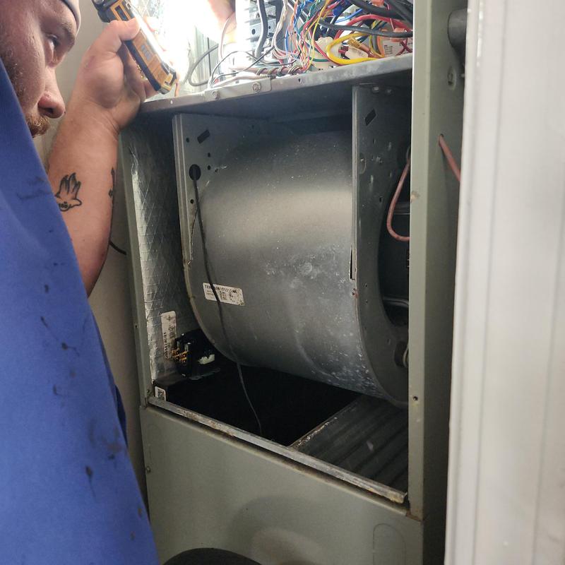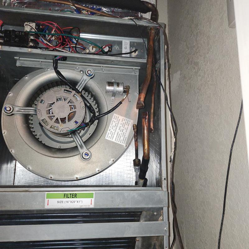 Technicians in Jacksonville, Florida removed a faulty blower motor and installed a new one under warranty. They inspected electrical components, measured temperatures, flushed the drain line, and confirmed the coils were clean. A new air filter was installed. The HVAC system now operates normally.