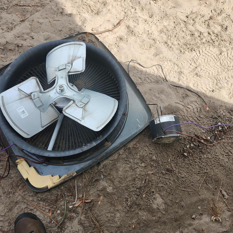 A technician in Orange Park, Florida removed a faulty condenser fan motor and blade, inspected components, installed a new motor and fan blade, replaced the fan grill and capacitor, ensured proper airflow, and tested the HVAC unit for functionality.