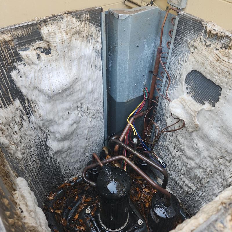 Chills on Wheels Heating and Air Contractors Inc completed an HVAC system cleaning in Jacksonville, Florida. Technicians deep cleaned the evaporator and condenser coils to improve airflow and reduce motor strain. They used coil cleaner, brushed debris, rinsed components, and applied duct spray to leave the system clean and running efficiently.