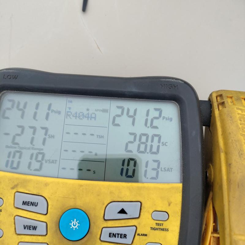 Chills on Wheels Heating and Air Contractors Inc inspected an HVAC unit in Jacksonville, Florida. Technicians found low R-410A refrigerant levels and recharged 4 pounds by request. A leak detection test indicated service valve leaks. The customer declined a full nitrogen test and additional repairs. Technicians advised that unresolved leaks may continue affecting performance.