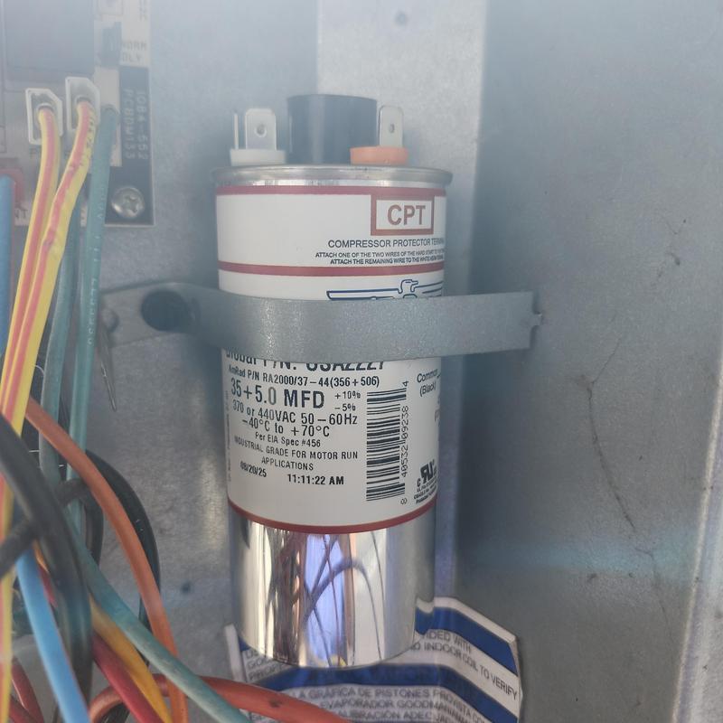 A technician in Jacksonville, Florida replaced a faulty condenser fan motor to improve the AC unit’s cooling. The contactor was also replaced with a pre-owned part. The capacitor was tested and found functional. The compressor showed early signs of failure, so a follow-up inspection was recommended to monitor its condition.
