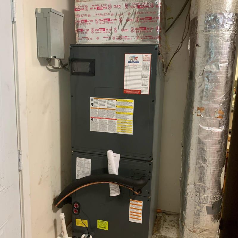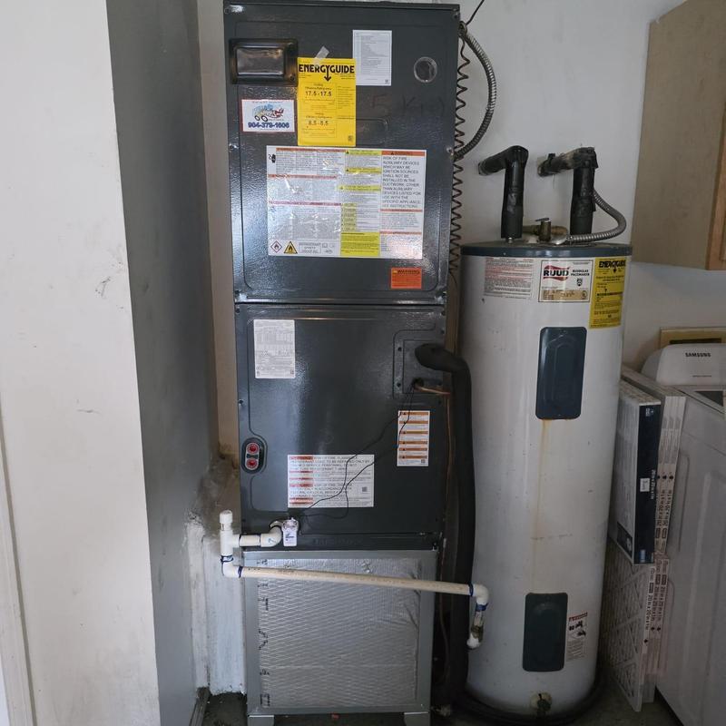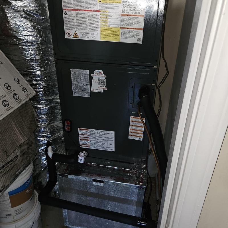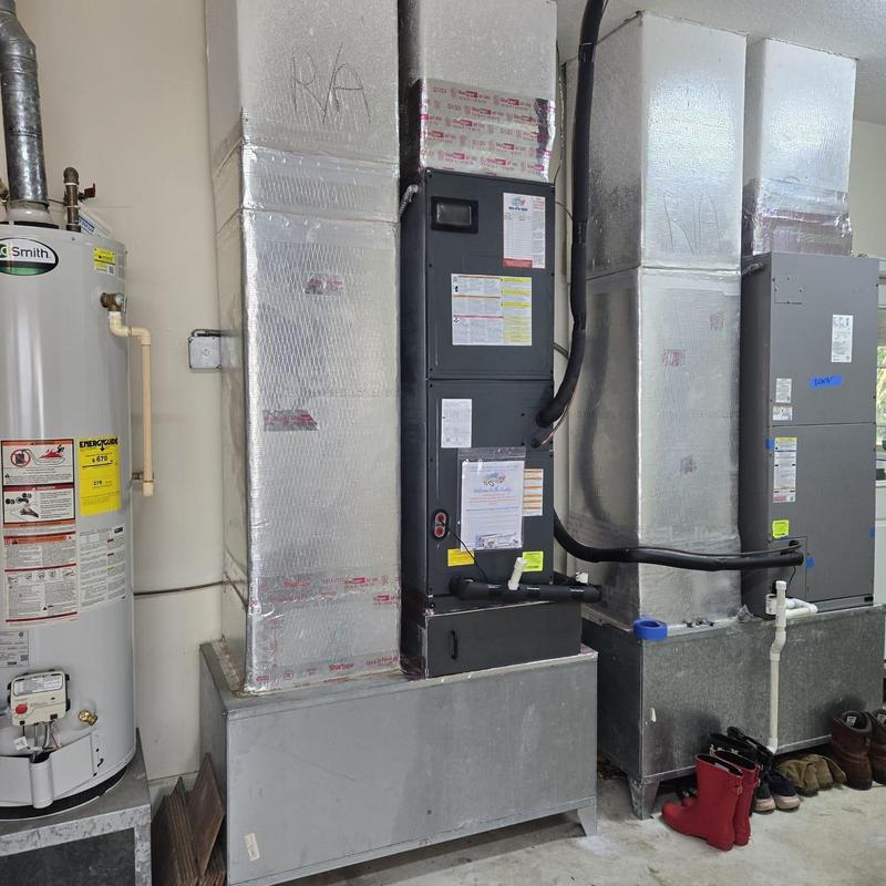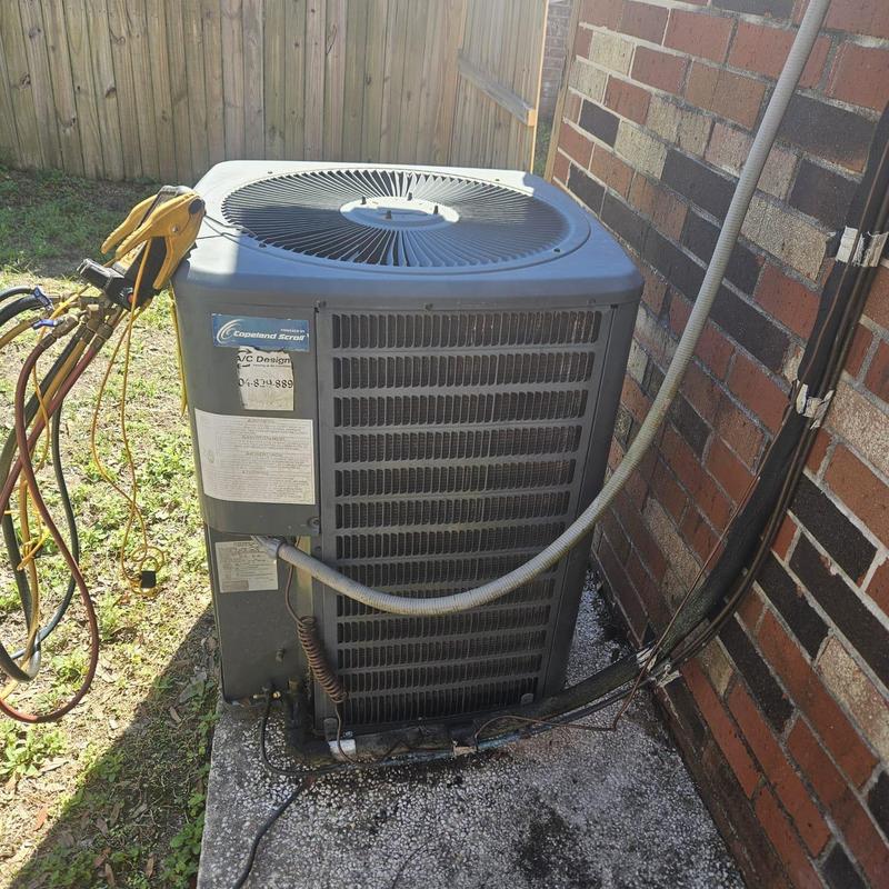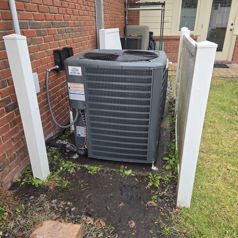 Chills on Wheels Heating and Air Contractors Inc replaced a worn-out heat pump system in Orange Park, Florida. Technicians removed the old units, cleaned refrigerant lines, installed a new air handler with emergency heat, and set a new condenser on a concrete pad with secure tie-downs. The team also installed a thermostat and coordinated local permit inspection.