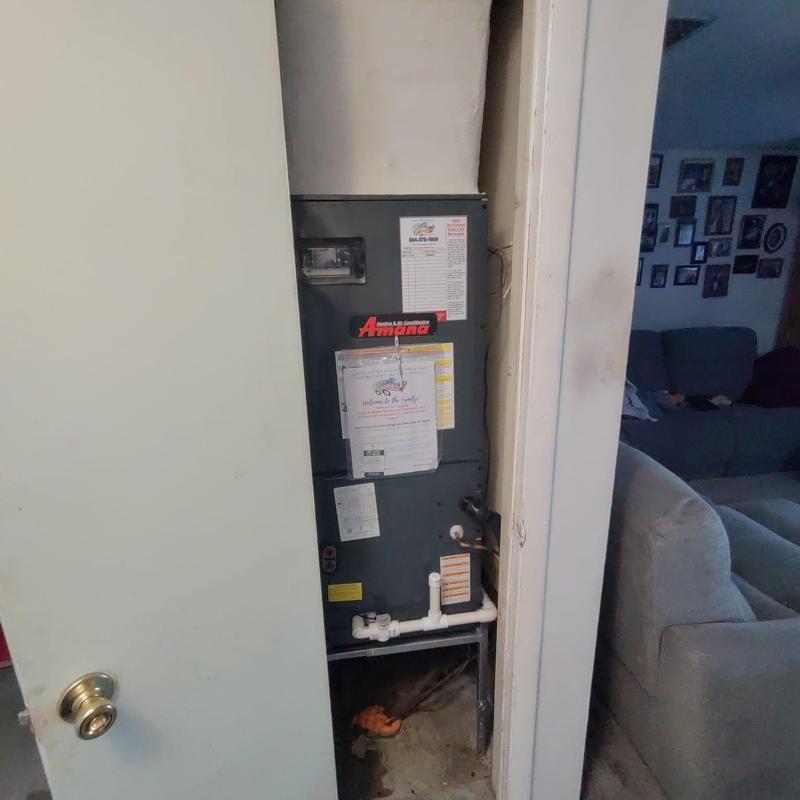 Chills on Wheels Heating and Air Contractors Inc replaced a worn-out heat pump system in Orange Park, Florida. The team removed the old air handler and condenser, flushed refrigerant lines, cleaned the drain, installed a new thermostat, air handler, and condenser, and secured the unit with locking caps and hurricane tie downs on a new concrete pad.