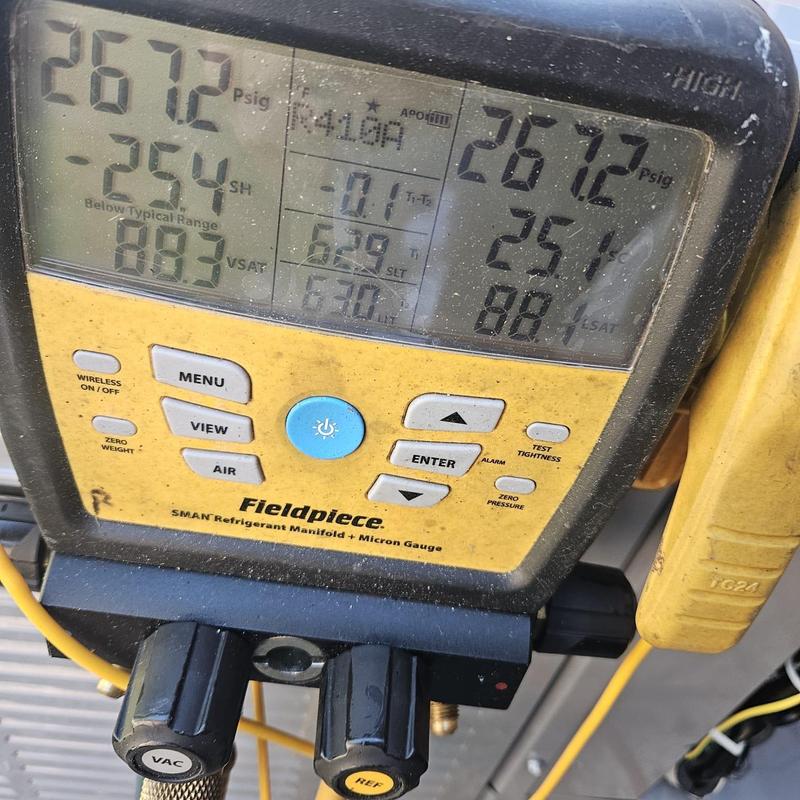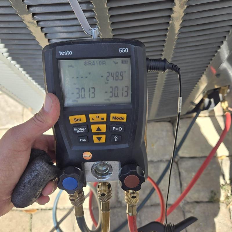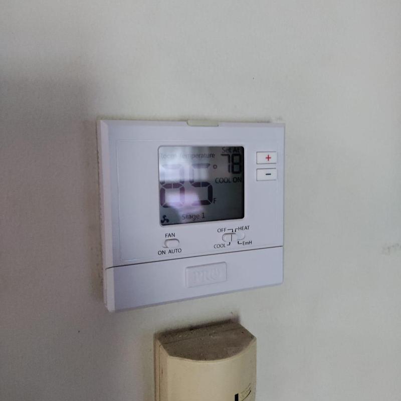 Chills on Wheels Heating and Air Contractors Inc replaced a malfunctioning thermostat in St. Augustine, Florida. The team inspected the system, cleaned the drain line, replaced the air filter, and confirmed proper cooling and drainage. Compressor performance, refrigerant pressure, and coil condition were also verified to ensure full system operation.