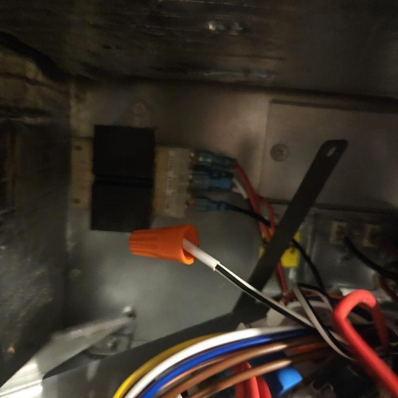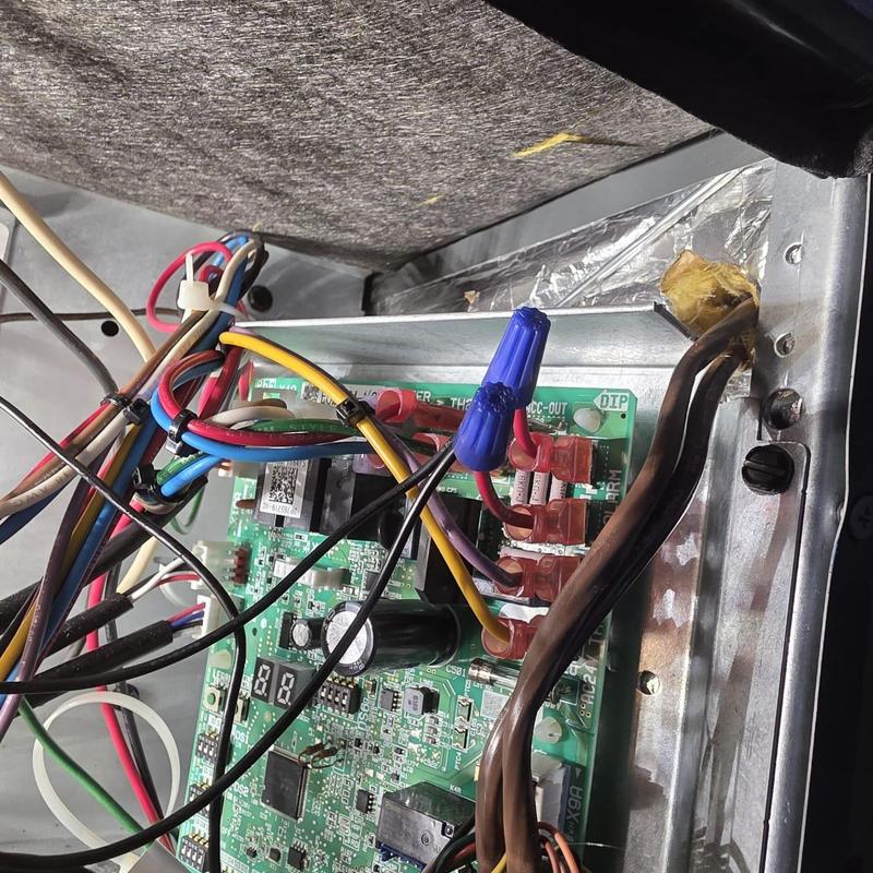 Technicians in Yulee, Florida replaced a corroded thermostat and a damaged fan control board that had been bypassed with an alternate relay. They also inspected irregular heat strip cycling. After installing a new control board, they rebooted the HVAC system, which is now operating correctly. Further diagnostics were recommended to ensure full system stability.