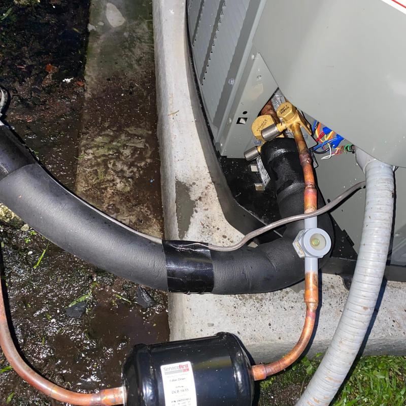 Chills on Wheels Heating and Air Contractors Inc replaced a worn-out heat pump system in Orange Park, Florida. The team cleaned refrigerant piping, flushed the drain line, installed a concrete pad, mounted a new air handler and condenser with tie-downs, and connected a new thermostat and emergency heater.